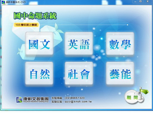 103學年上學期 康軒版 國中一年級~三年級 (全年級、全領域) 題庫光碟 繁體中文教學合輯版(DVD一片裝)
