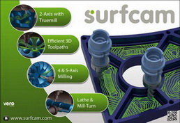 Surfcam擁有二維以及三維建模功能,支援二軸至五軸的數控設備。在過去的25年裏,